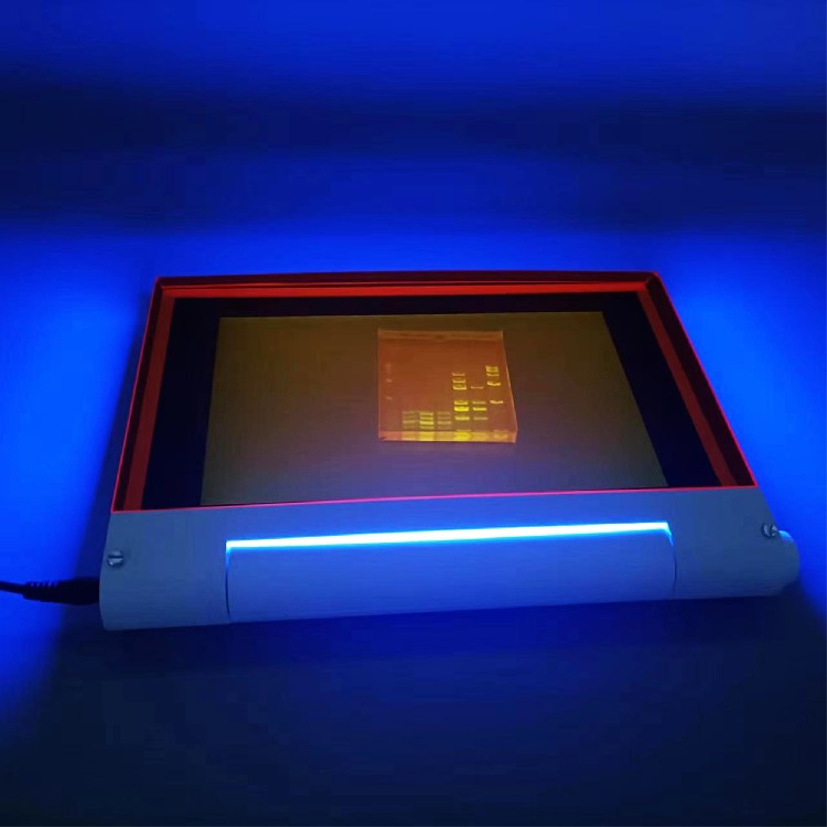 The blue LED transilluminator is a high-quality blue light transmission device, which is widely used for the observation of nucleic acid and protein gel staining. Blue LED light source, with amber filter cover, and use with nucleic acid-safe dyes with excitation wavelength of 450~495nm, can achieve perfect gel viewing and cutting effects without protective light filtering goggles.